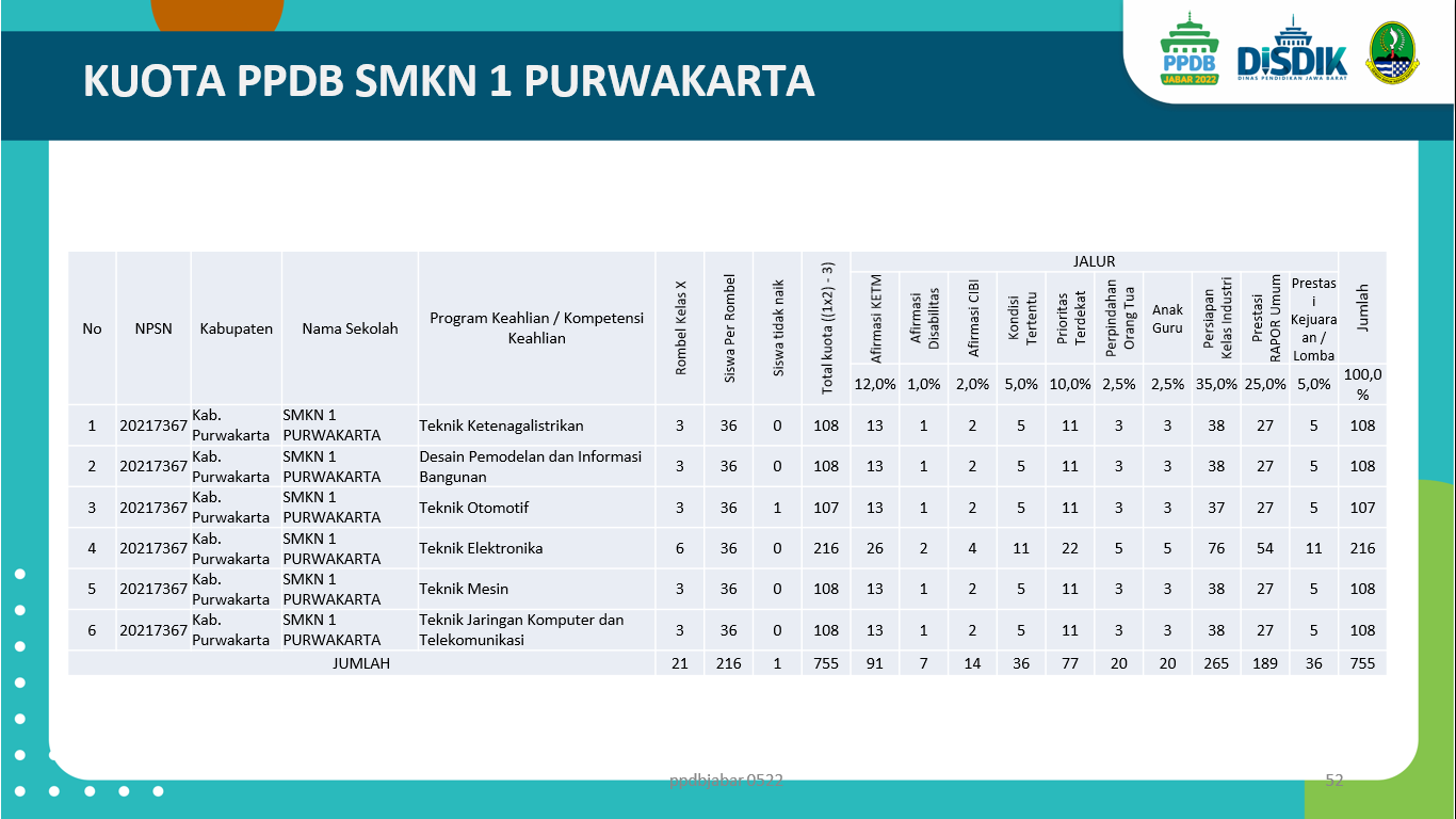 KUOTA PENERIMAAN CPDB SMKN 1 PURWAKARTA